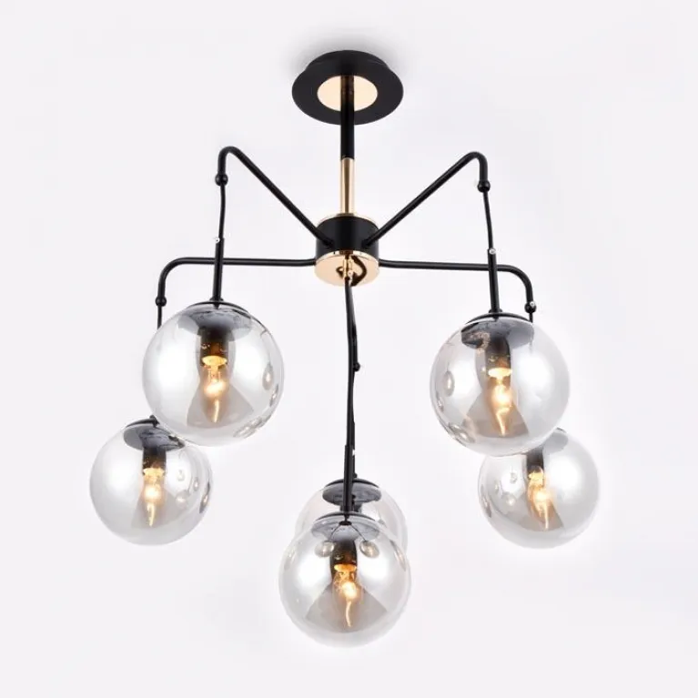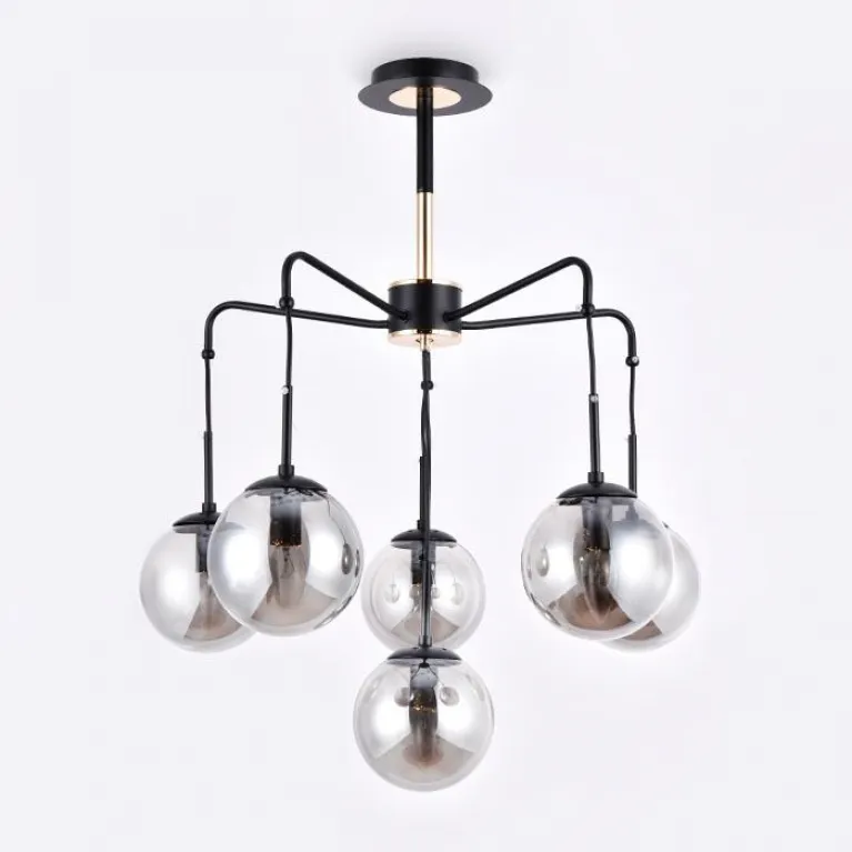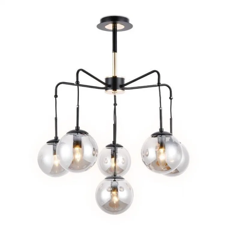 Люстра оснащена шестью лампами, что обеспечивает яркое и равномерное освещение пространства. Она идеально подходит для гостиной, столовой или спальни, создавая уютную и комфортную атмосферу. Основание выполнено из прочного металла, что гарантирует долговечность и надежность конструкции.