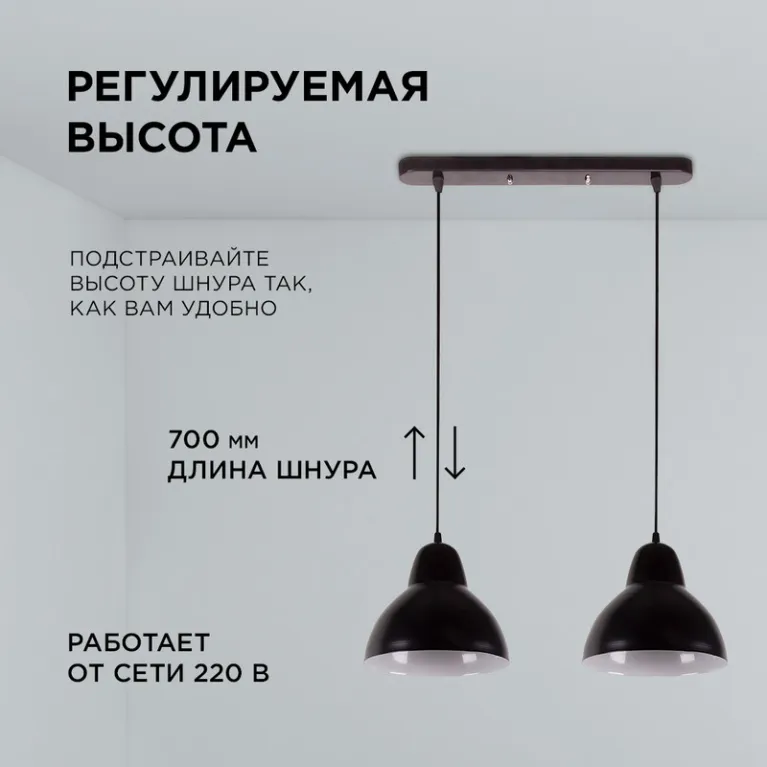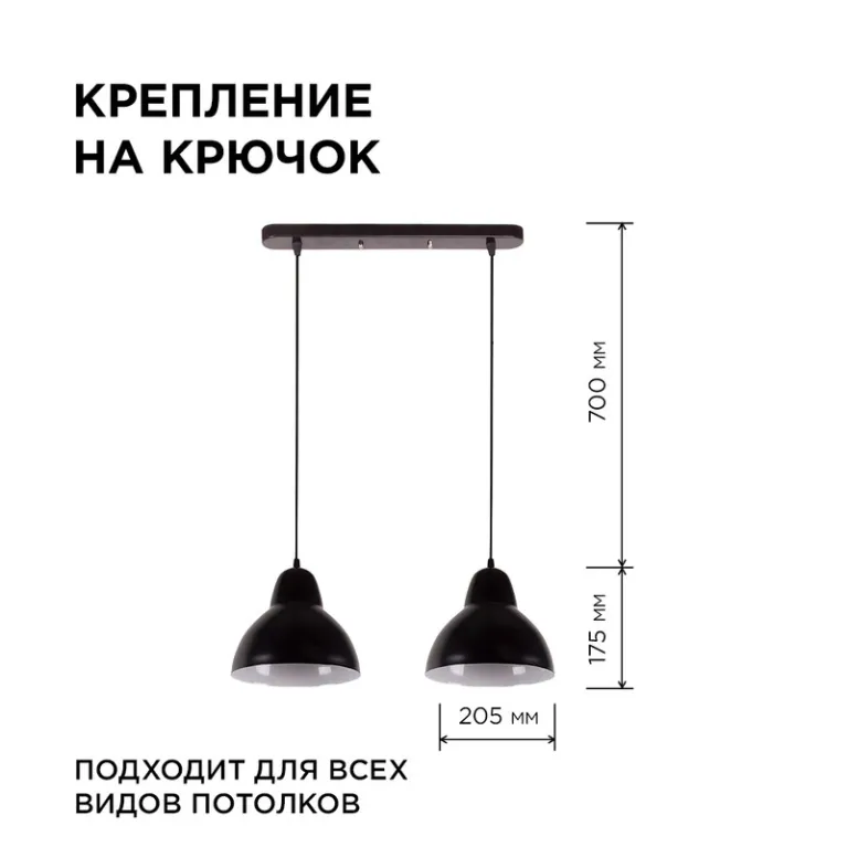 Преобладающий цвет плафонов: Черный, арматуры: Черный; материал изготовления арматуры: Металл, размеры, мм: длина 205 / ширина 205 / высота 175 Общая мощность – 80 Ватт, а максимальная площадь освещения до 4 м2. Основной тип ламп, предусмотренный производителем: Накаливания с цоколем E27. В зависимости от предпочтений можно использовать лампы теплового, холодного или нейтрального света, за исключением люстр с типом цоколя LED.