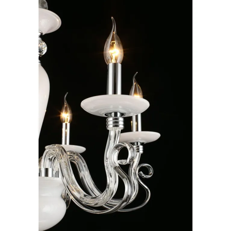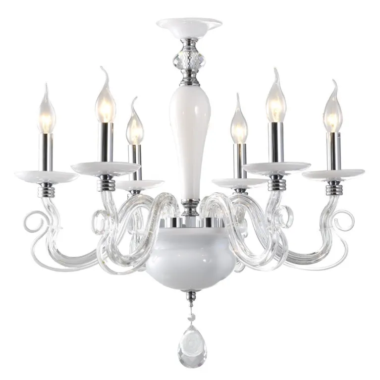 Люстра оснащена шестью лампами, что обеспечивает яркое и равномерное освещение пространства. Она идеально подходит для гостиной, столовой или спальни, добавляя помещению уюта и гармонии. Основание выполнено из прочного металла, что гарантирует долговечность и надежность конструкции.