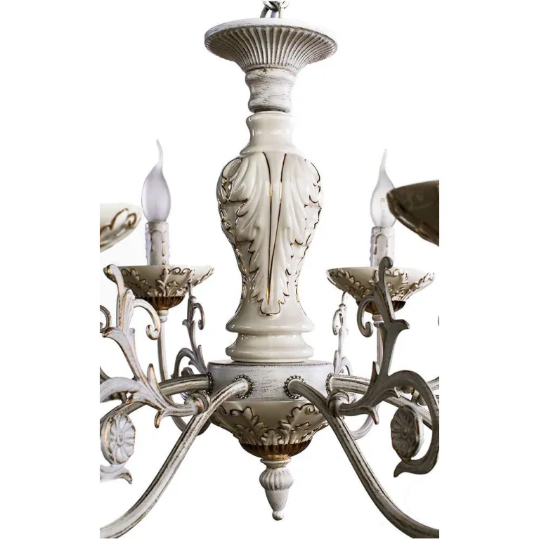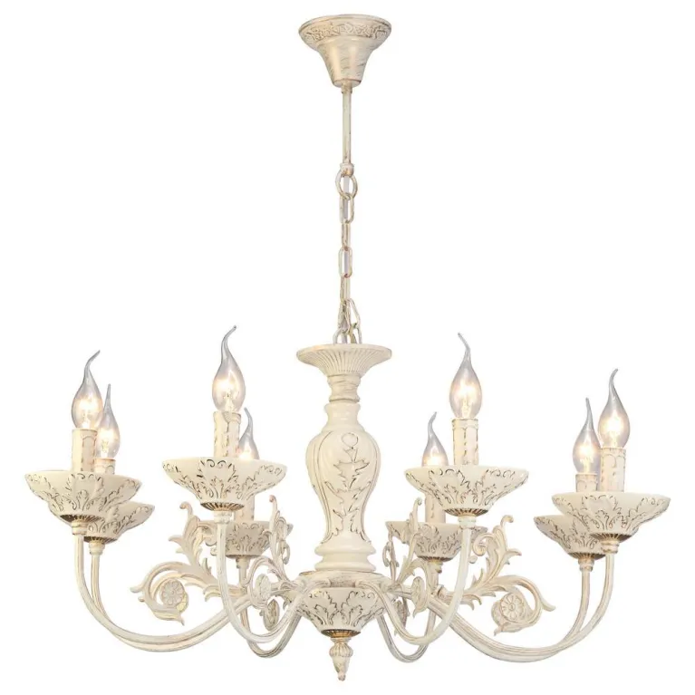 Люстра оснащена восьмью лампами, что обеспечивает яркое и равномерное освещение пространства. Она идеально подходит для гостиной, столовой или спальни, добавляя помещению уюта и гармонии. Основание выполнено из прочного металла, что гарантирует долговечность и надежность конструкции.
