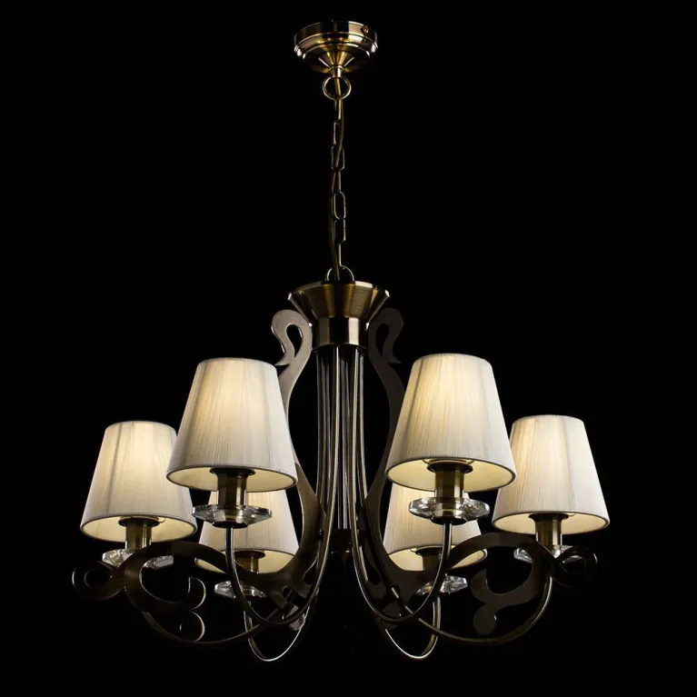 Люстра оснащена шестью источниками света с цоколем E14, что позволяет использовать различные типы ламп, включая энергосберегающие и светодиодные. Суммарная мощность ламп - 36 Вт, что обеспечивает яркое и равномерное освещение пространства.