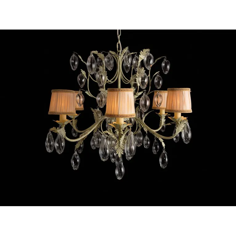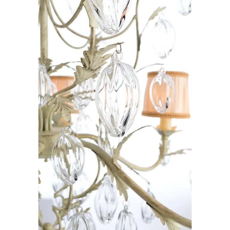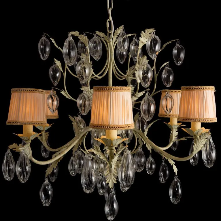 Люстра оснащена шестью лампами, что обеспечивает яркое и равномерное освещение. Она идеально подходит для гостиной, столовой или спальни, добавляя уюта и гармонии в ваш дом. Основание выполнено из прочного металла, что гарантирует долговечность и надежность конструкции.