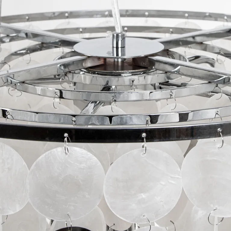 Преобладающий цвет плафонов: Белый, арматуры: Хром; материал изготовления арматуры: Металл, размеры, мм: / высота 330 / диаметр 450. Общая мощность – 240 Ватт, а максимальная площадь освещения до 8 м2. Основной тип ламп, предусмотренный производителем: Накаливания с цоколем E14. В зависимости от предпочтений можно использовать лампы теплового, холодного или нейтрального света, за исключением люстр с типом цоколя LED.
