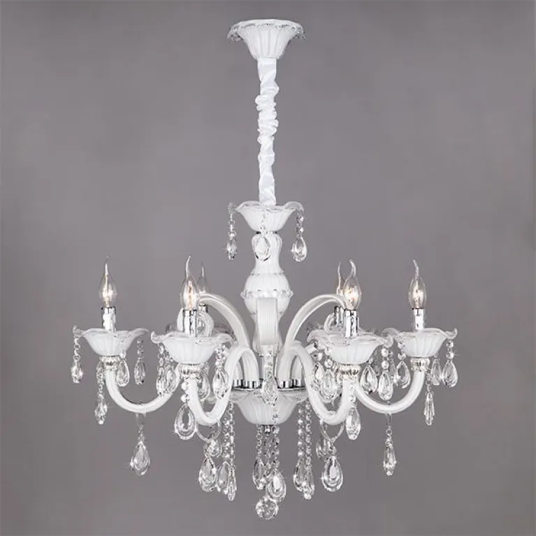 Люстра оснащена шестью лампами, что обеспечивает яркое и равномерное освещение. Она совместима с лампочками типа E14, что позволяет использовать как традиционные лампы накаливания, так и энергосберегающие светодиодные варианты. Суммарная мощность ламп - 360 Вт, что гарантирует достаточный уровень освещения.