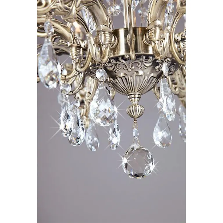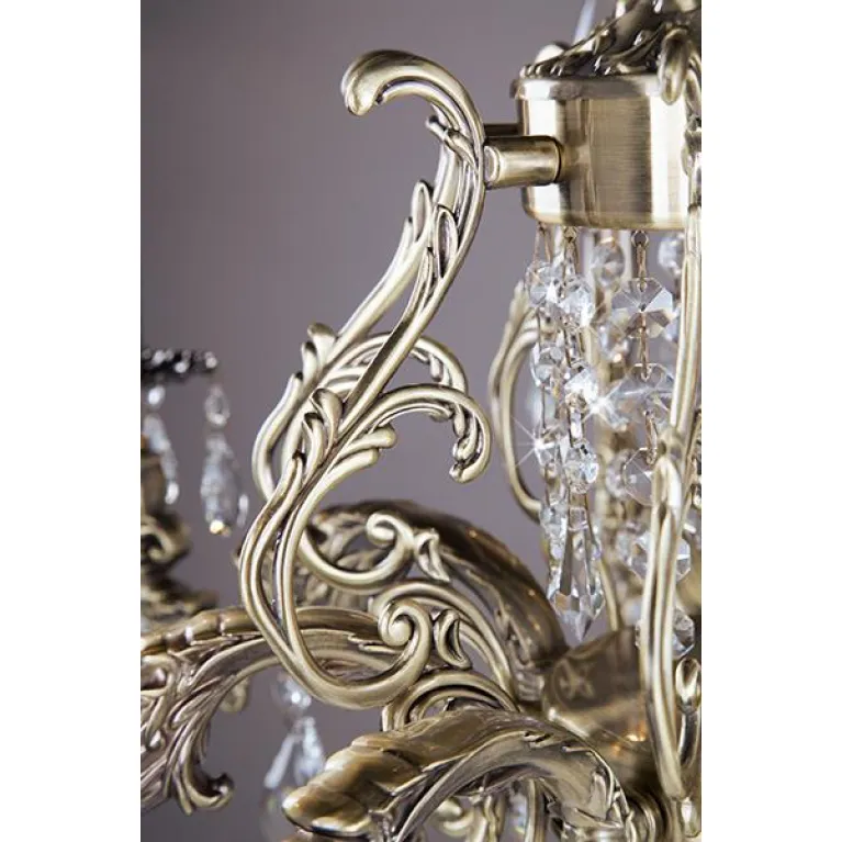 Люстра оснащена восемью лампами, что обеспечивает яркое и равномерное освещение. Она прекрасно подходит для гостиной, столовой или спальни, создавая уютную и комфортную атмосферу. Основание выполнено из прочного металла, что гарантирует долговечность и надежность конструкции.
