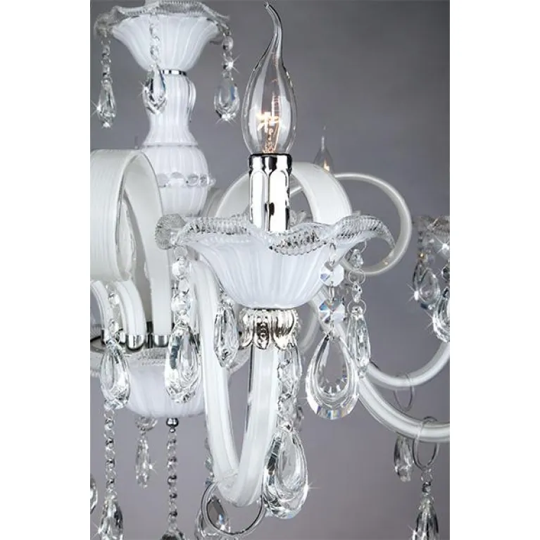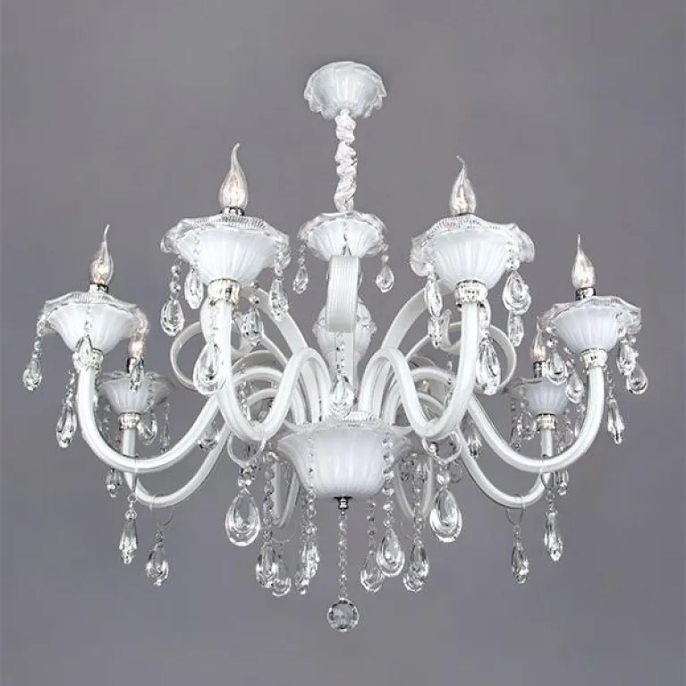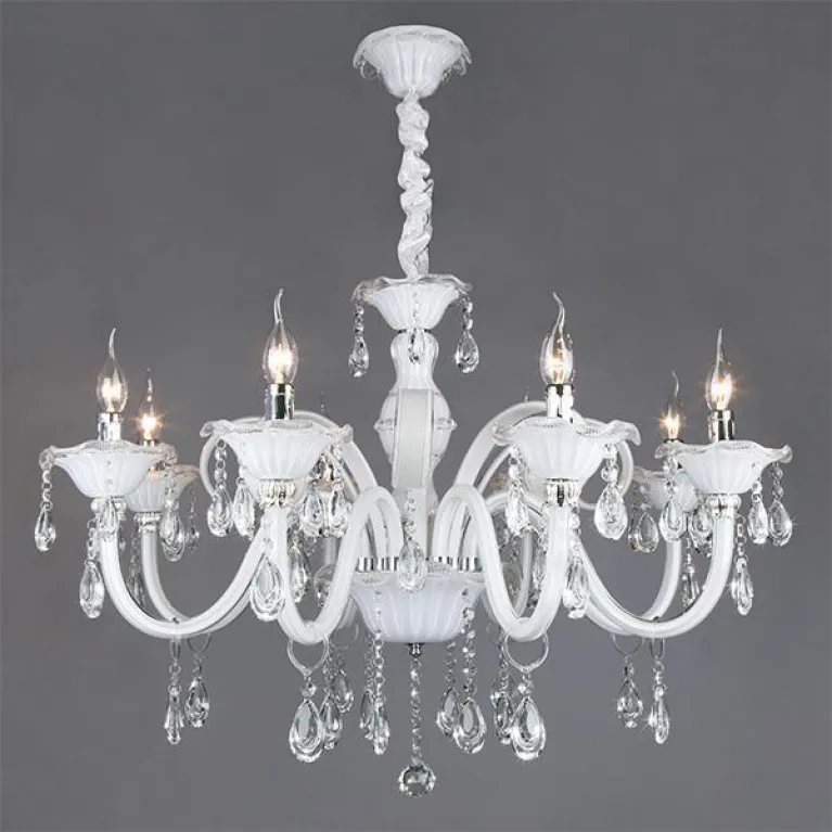 Светильник совместим с лампами типа E14, что позволяет использовать как традиционные лампы накаливания, так и энергосберегающие или светодиодные, в зависимости от ваших предпочтений и потребностей. Максимальная мощность люстры составляет 320 Вт, что гарантирует яркое и качественное освещение.
