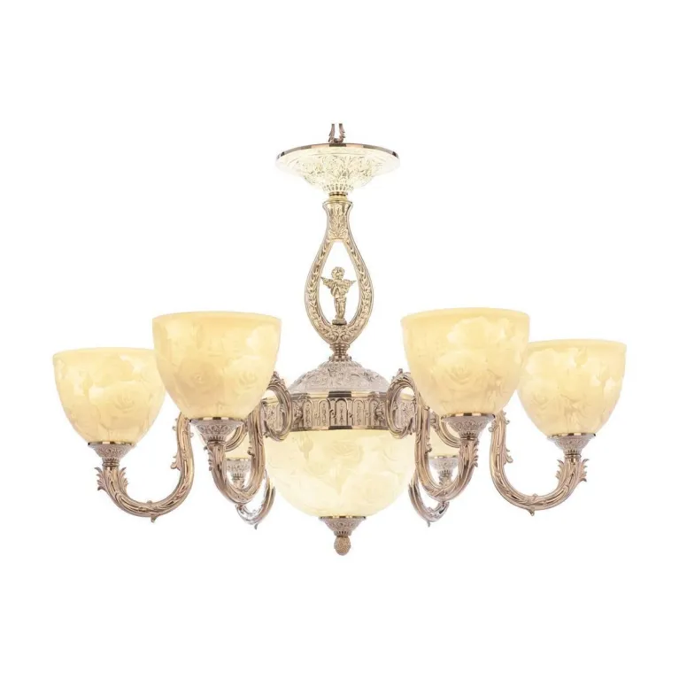 Люстра оснащена шестью источниками света с цоколем E14, что позволяет использовать лампы различных типов и мощности. Суммарная мощность ламп - 300 Вт, что обеспечивает яркое и равномерное освещение пространства. Лампы не входят в комплект поставки и приобретаются отдельно.