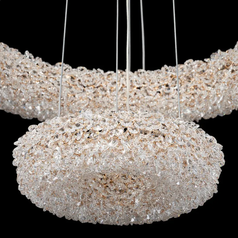 Преобладающий цвет плафонов: Прозрачный, арматуры: Золото; материал изготовления арматуры: Металл, размеры, мм: / высота 1200 / диаметр 580. Общая мощность – 75 Ватт, а максимальная площадь освещения до 24 м2. Основной тип ламп, предусмотренный производителем: Светодиодная с цоколем LED. В зависимости от предпочтений можно использовать лампы теплового, холодного или нейтрального света, за исключением люстр с типом цоколя LED.