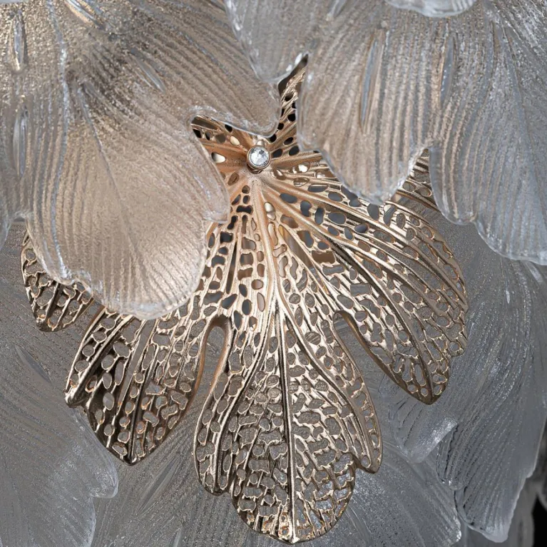 Преобладающий цвет плафонов: Разноцветный, арматуры: Золото; материал изготовления арматуры: Металл, размеры, мм: / высота 1100 / диаметр 800. Общая мощность – 1260 Ватт, а максимальная площадь освещения до 34 м2. Основной тип ламп, предусмотренный производителем: Накаливания с цоколем E14. В зависимости от предпочтений можно использовать лампы теплового, холодного или нейтрального света, за исключением люстр с типом цоколя LED.