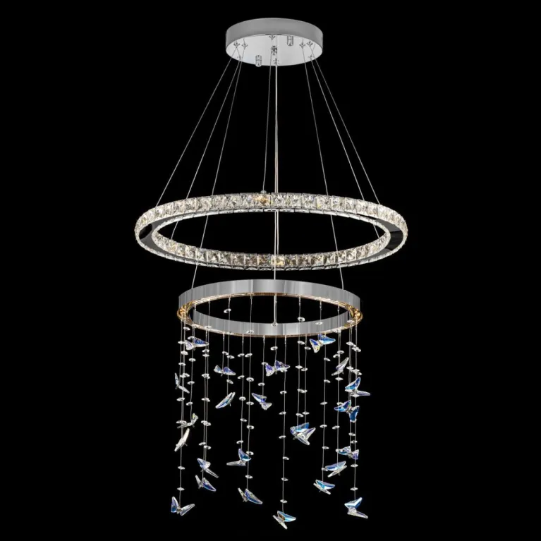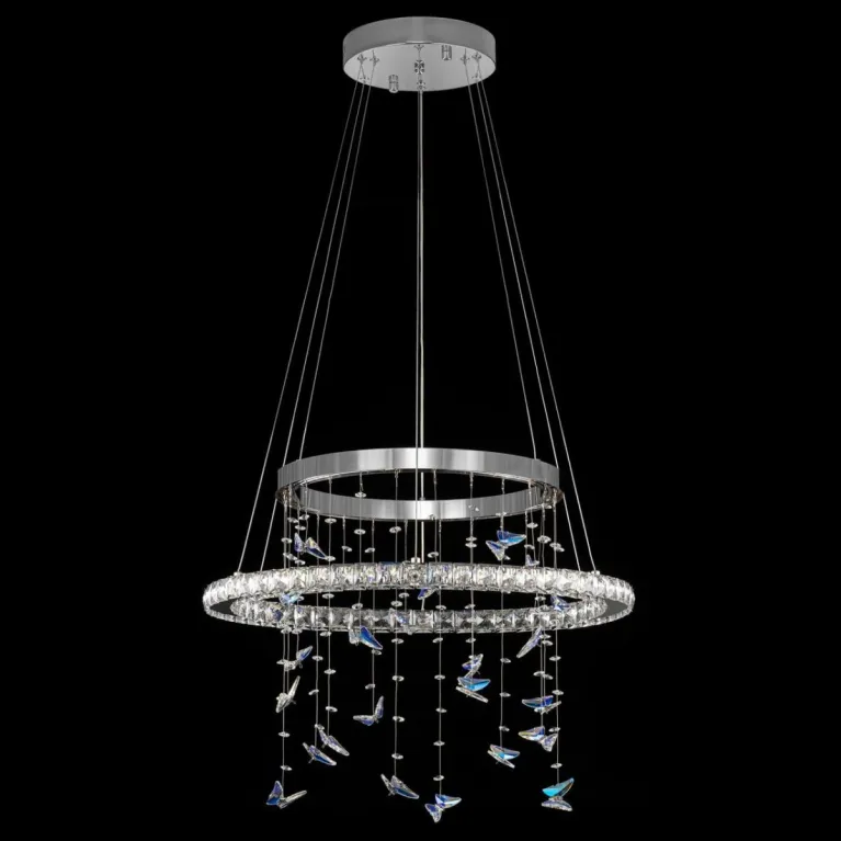Преобладающий цвет плафонов: Прозрачный, арматуры: Хром; материал изготовления арматуры: Металл, размеры, мм: / высота 1500 / диаметр 590. Общая мощность – 43 Ватт, а максимальная площадь освещения до 15 м2. Основной тип ламп, предусмотренный производителем: Светодиодная с цоколем LED. В зависимости от предпочтений можно использовать лампы теплового, холодного или нейтрального света, за исключением люстр с типом цоколя LED.
