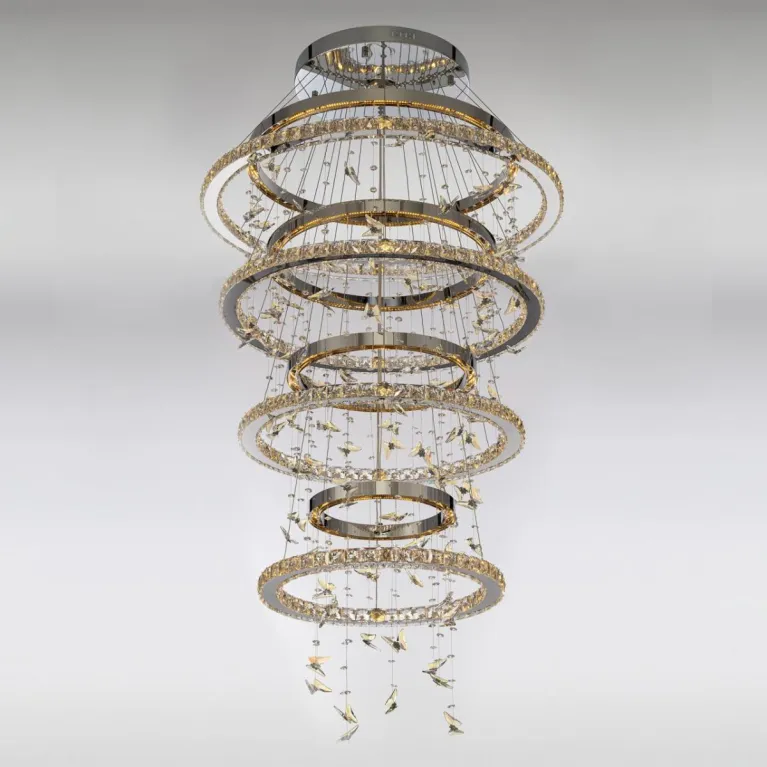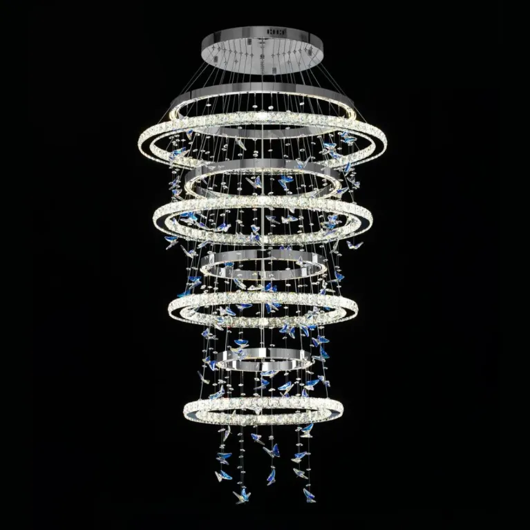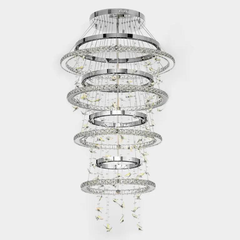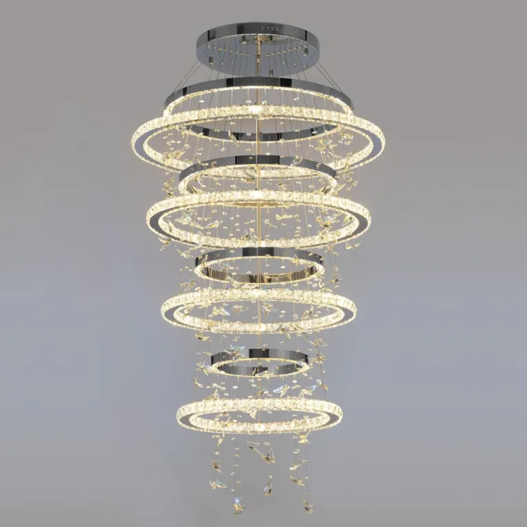 Преобладающий цвет плафонов: Прозрачный, арматуры: Хром; материал изготовления арматуры: Металл, размеры, мм: / высота 2700 / диаметр 800. Общая мощность – 180 Ватт, а максимальная площадь освещения до 36 м2. Основной тип ламп, предусмотренный производителем: Светодиодная с цоколем LED. В зависимости от предпочтений можно использовать лампы теплового, холодного или нейтрального света, за исключением люстр с типом цоколя LED.