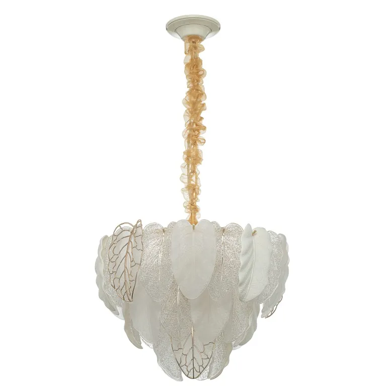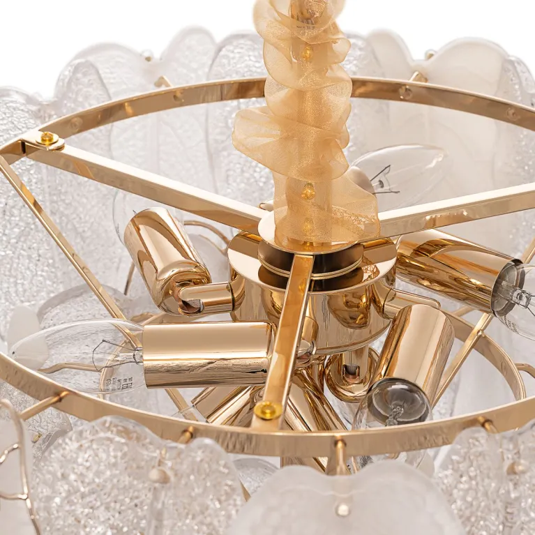 Преобладающий цвет плафонов: Разноцветный, арматуры: Золото; материал изготовления арматуры: Металл, размеры, мм: / высота 1150 / диаметр 500. Общая мощность – 400 Ватт, а максимальная площадь освещения до 18 м2. Основной тип ламп, предусмотренный производителем: Накаливания с цоколем E14. В зависимости от предпочтений можно использовать лампы теплового, холодного или нейтрального света, за исключением люстр с типом цоколя LED.