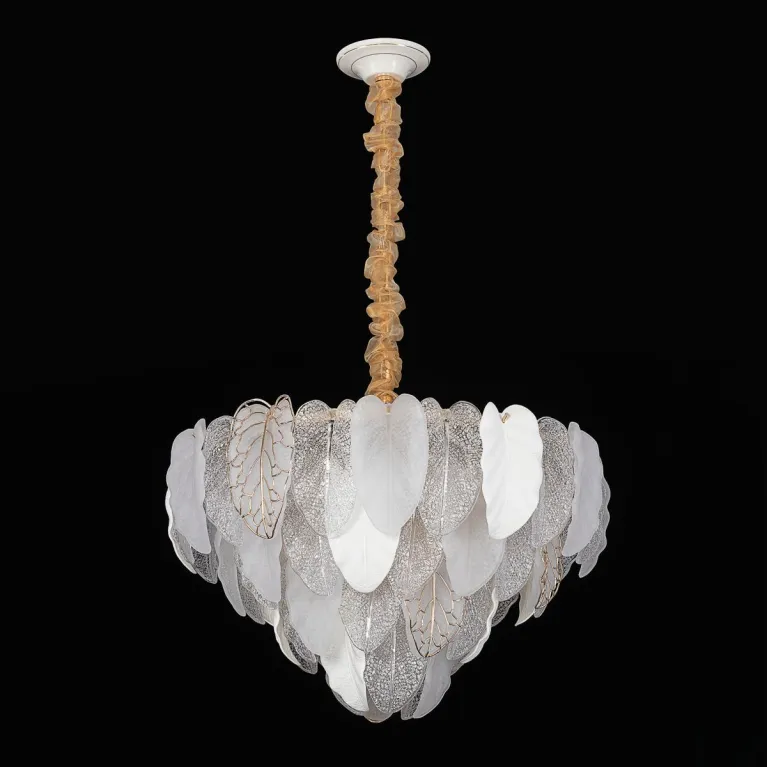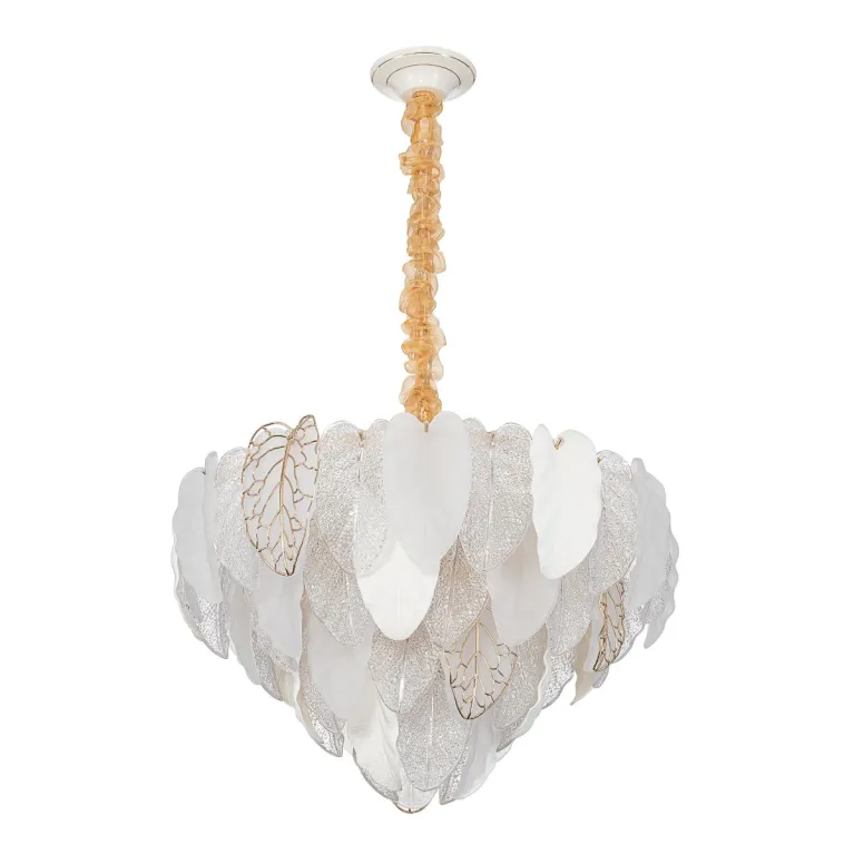 Преобладающий цвет плафонов: Разноцветный, арматуры: Золото; материал изготовления арматуры: Металл, размеры, мм: / высота 1150 / диаметр 650. Общая мощность – 600 Ватт, а максимальная площадь освещения до 24 м2. Основной тип ламп, предусмотренный производителем: Накаливания с цоколем E14. В зависимости от предпочтений можно использовать лампы теплового, холодного или нейтрального света, за исключением люстр с типом цоколя LED.