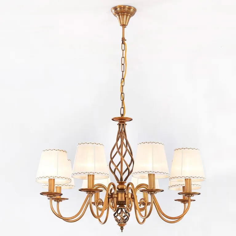 Люстра оснащена пятью лампами типа E14, что позволяет использовать как традиционные лампы накаливания, так и энергосберегающие или светодиодные, обеспечивая максимальную гибкость в выборе источников света. Суммарная мощность ламп составляет 320 Вт, что обеспечивает яркое и равномерное освещение пространства.