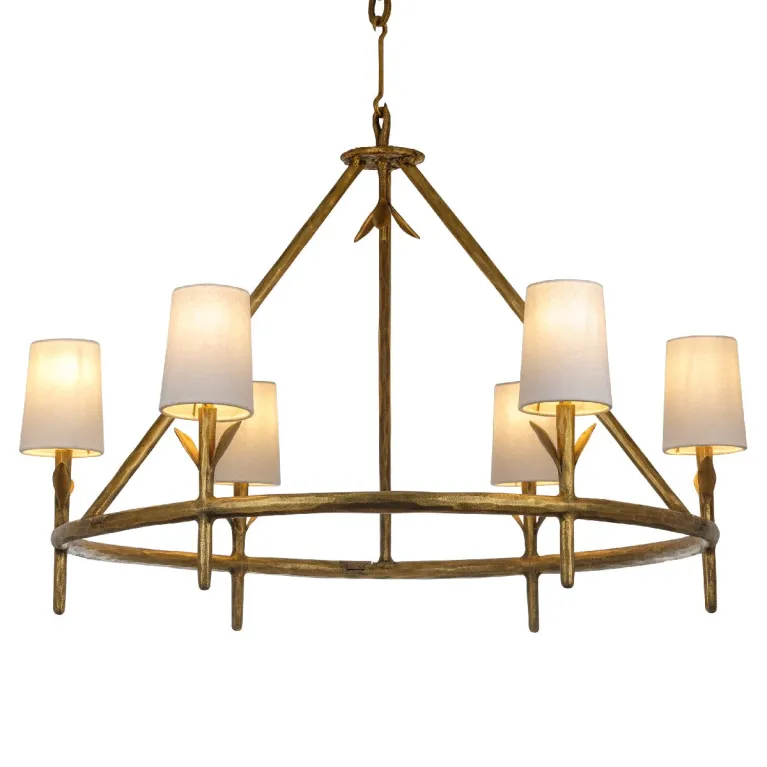 Преобладающий цвет плафонов: Белый, арматуры: Латунь; материал изготовления арматуры: Металл, размеры, мм: / высота 720 / диаметр 1040. Общая мощность – 240 Ватт. Основной тип ламп, предусмотренный производителем: Накаливания с цоколем E27. В зависимости от предпочтений можно использовать лампы теплового, холодного или нейтрального света, за исключением люстр с типом цоколя LED.