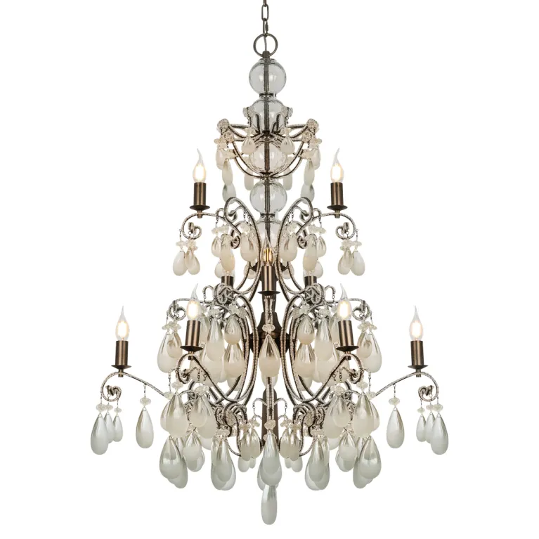 Преобладающий цвет арматуры: Бронза; материал изготовления арматуры: Металл, размеры, мм: / высота 1200 / диаметр 860. Общая мощность – Ватт. Основной тип ламп, предусмотренный производителем: Накаливания с цоколем В зависимости от предпочтений можно использовать лампы теплового, холодного или нейтрального света, за исключением люстр с типом цоколя LED.