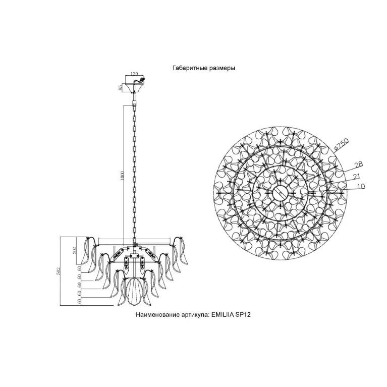 Преобладающий цвет плафонов: Белый, арматуры: Золото; материал изготовления арматуры: Металл, размеры, мм: / высота 502 / диаметр 750. Общая мощность – 480 Ватт. Основной тип ламп, предусмотренный производителем: Накаливания с цоколем E14. В зависимости от предпочтений можно использовать лампы теплового, холодного или нейтрального света, за исключением люстр с типом цоколя LED.