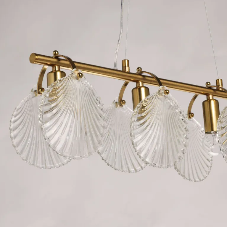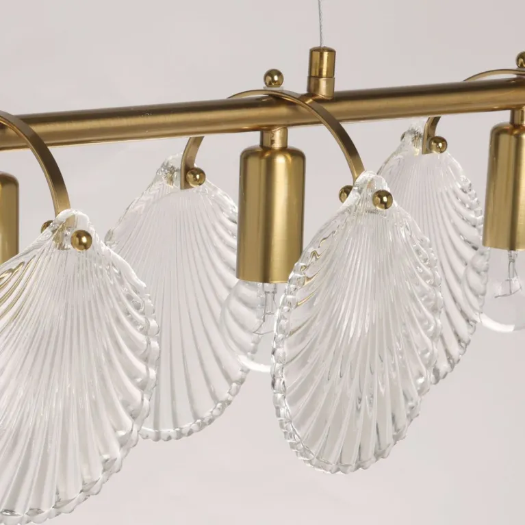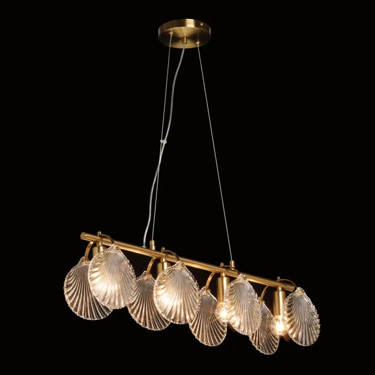 Преобладающий цвет плафонов: Прозрачный, арматуры: Латунь; материал изготовления арматуры: Металл, размеры, мм: длина 670 / ширина 120 / высота 1220 Общая мощность – 240 Ватт, а максимальная площадь освещения до 12 м2. Основной тип ламп, предусмотренный производителем: Накаливания с цоколем E14. В зависимости от предпочтений можно использовать лампы теплового, холодного или нейтрального света, за исключением люстр с типом цоколя LED.