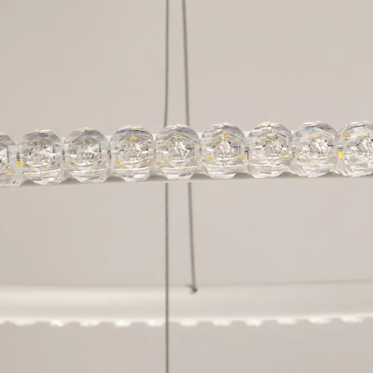 Преобладающий цвет плафонов: Прозрачный, арматуры: Белый; материал изготовления арматуры: Металл, размеры, мм: / высота 820 / диаметр 650. Общая мощность – 110 Ватт, а максимальная площадь освещения до 20 м2. Основной тип ламп, предусмотренный производителем: Светодиодная с цоколем LED. В зависимости от предпочтений можно использовать лампы теплового, холодного или нейтрального света, за исключением люстр с типом цоколя LED.