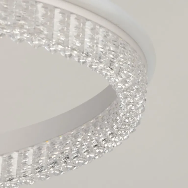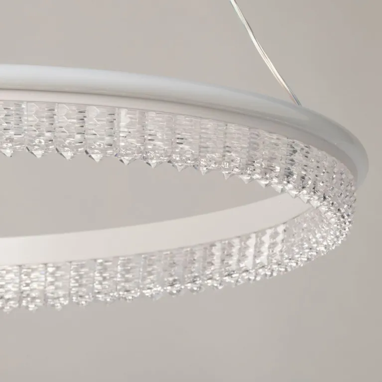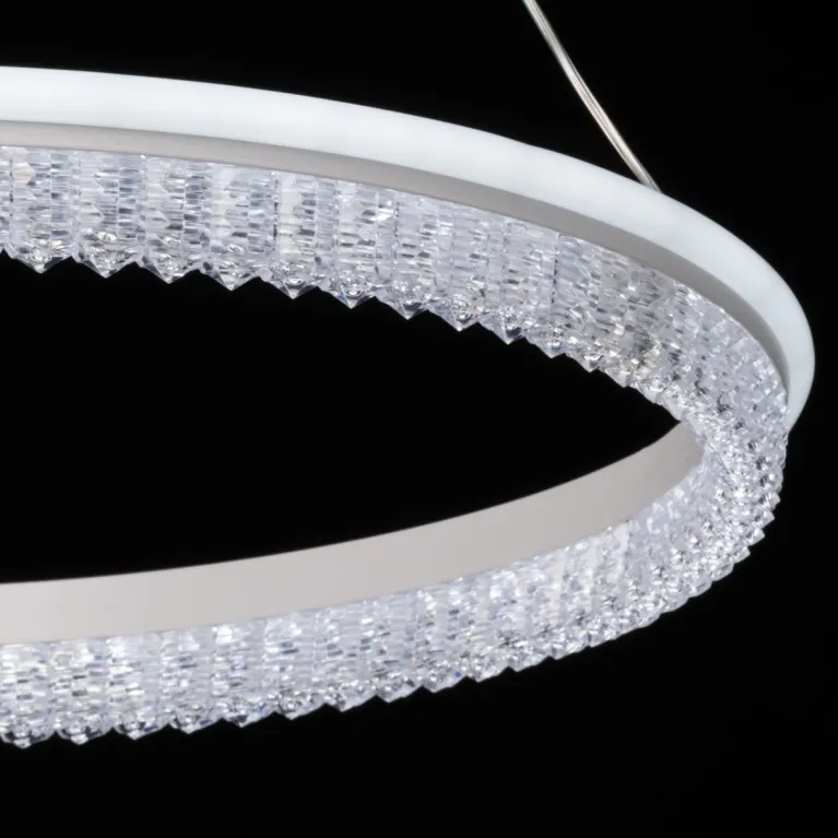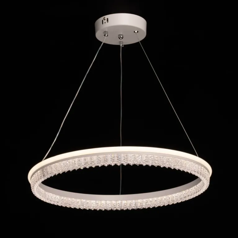 Преобладающий цвет плафонов: Прозрачный, арматуры: Белый; материал изготовления арматуры: Металл, размеры, мм: / высота 750 / диаметр 500. Общая мощность – 108 Ватт, а максимальная площадь освещения до 22 м2. Основной тип ламп, предусмотренный производителем: Светодиодная с цоколем LED. В зависимости от предпочтений можно использовать лампы теплового, холодного или нейтрального света, за исключением люстр с типом цоколя LED.
