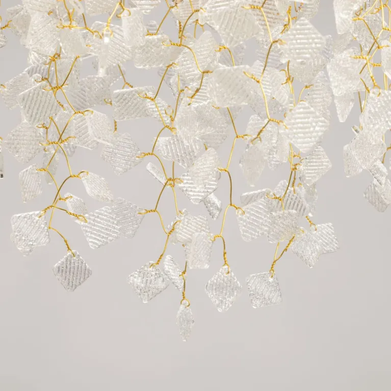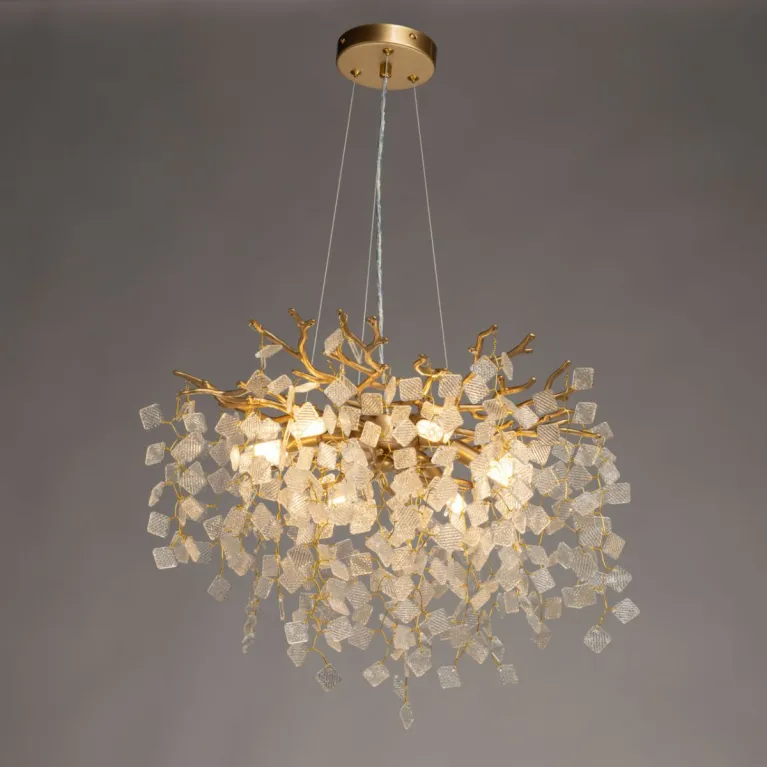 Преобладающий цвет плафонов: Прозрачный, арматуры: Золото; материал изготовления арматуры: Металл, размеры, мм: / высота 1500 / диаметр 600. Общая мощность – 360 Ватт, а максимальная площадь освещения до 18 м2. Основной тип ламп, предусмотренный производителем: Галогеновая с цоколем G9. В зависимости от предпочтений можно использовать лампы теплового, холодного или нейтрального света, за исключением люстр с типом цоколя LED.