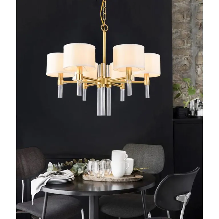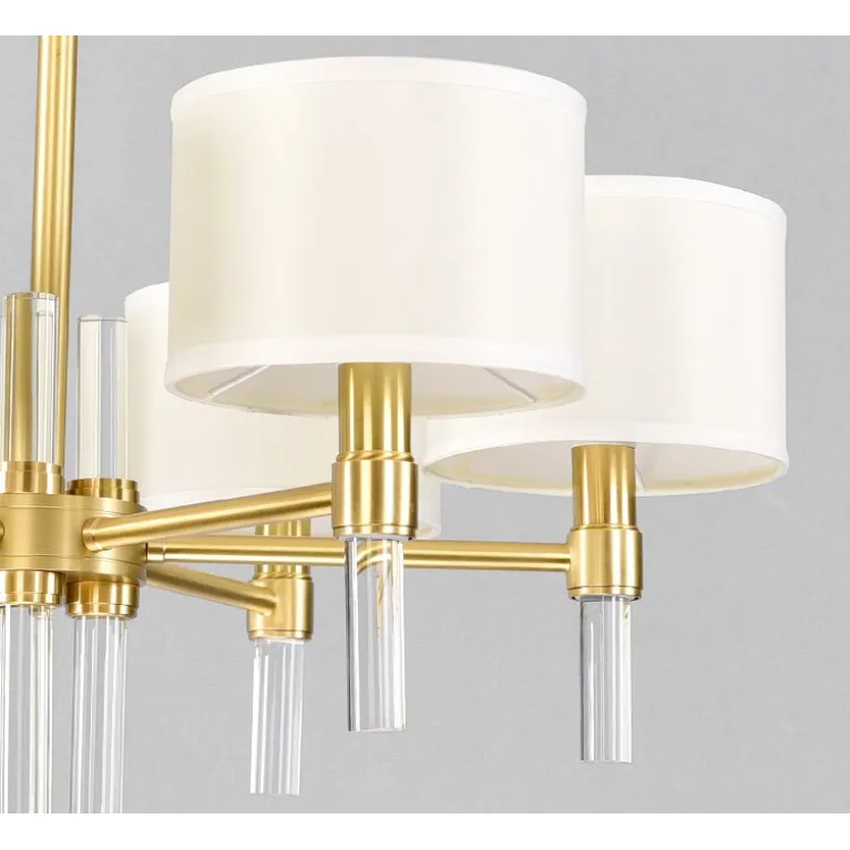 Преобладающий цвет плафонов: Белый, арматуры: Золото; материал изготовления арматуры: Металл, размеры, мм: / высота 500 / диаметр 750. Общая мощность – 240 Ватт, а максимальная площадь освещения до 12 м2. Основной тип ламп, предусмотренный производителем: Накаливания с цоколем E14. В зависимости от предпочтений можно использовать лампы теплового, холодного или нейтрального света, за исключением люстр с типом цоколя LED.