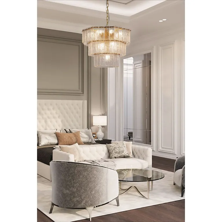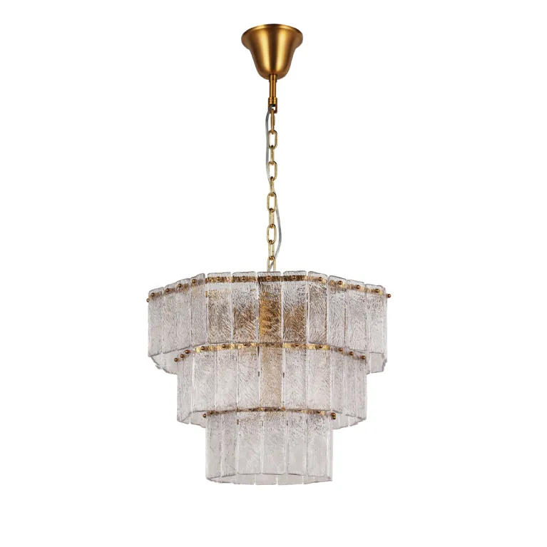 Преобладающий цвет плафонов: Прозрачный, арматуры: Латунь; материал изготовления арматуры: Металл, размеры, мм: / высота 400 / диаметр 550. Общая мощность – 65 Ватт. Основной тип ламп, предусмотренный производителем: Светодиодная с цоколем E14. В зависимости от предпочтений можно использовать лампы теплового, холодного или нейтрального света, за исключением люстр с типом цоколя LED.