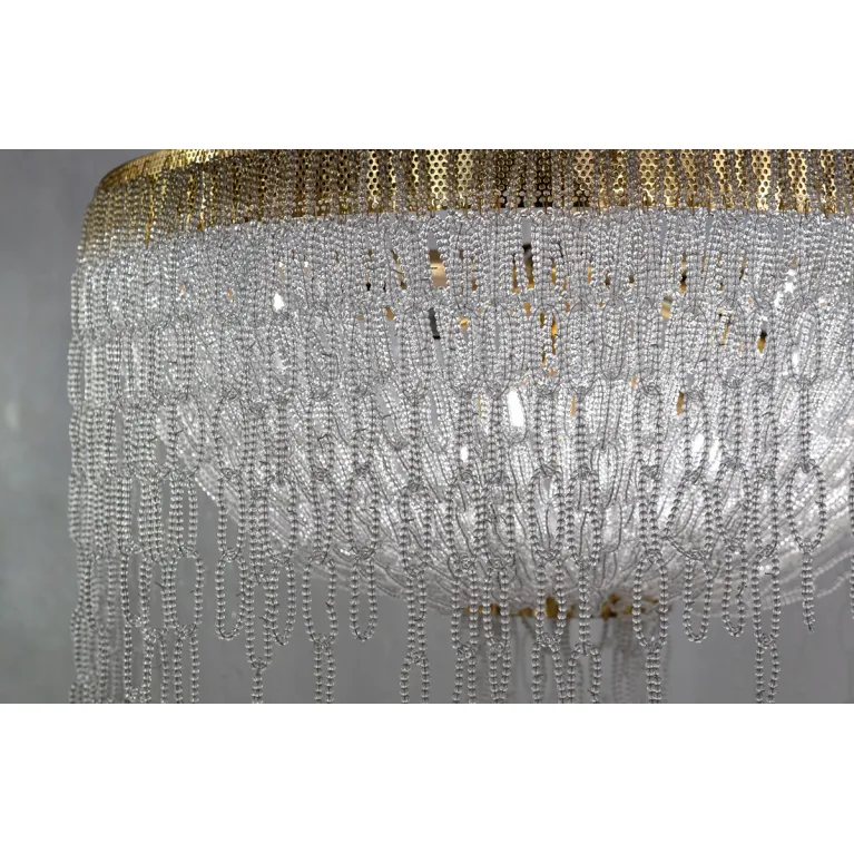 Преобладающий цвет плафонов: Прозрачный, арматуры: Золото; материал изготовления арматуры: Металл, размеры, мм: / высота 1000 / диаметр 650. Общая мощность – 200 Ватт, а максимальная площадь освещения до 10 м2. Основной тип ламп, предусмотренный производителем: Накаливания с цоколем E14. В зависимости от предпочтений можно использовать лампы теплового, холодного или нейтрального света, за исключением люстр с типом цоколя LED.