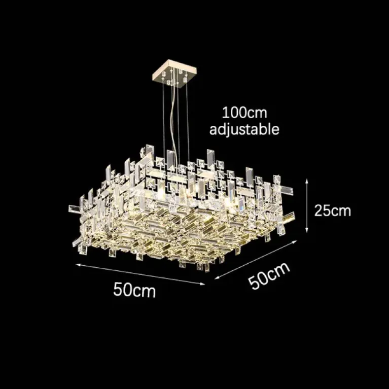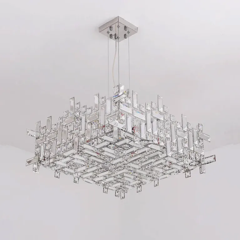 Преобладающий цвет плафонов: Прозрачный, арматуры: Хром; материал изготовления арматуры: Металл, размеры, мм: длина 500 / ширина 500 / высота 250 Общая мощность – 30 Ватт. Основной тип ламп, предусмотренный производителем: Светодиодная с цоколем E14. В зависимости от предпочтений можно использовать лампы теплового, холодного или нейтрального света, за исключением люстр с типом цоколя LED.