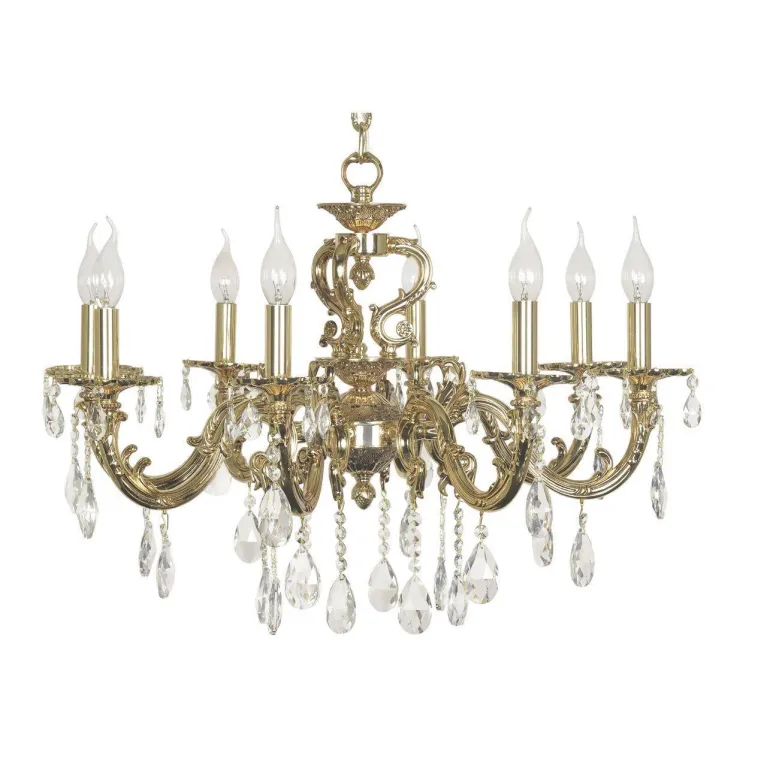 Хрустальные подвески придают светильнику неповторимый шарм и изысканность, делая его идеальным выбором для классических и утонченных интерьеров. Металлический корпус, выполненный в золотом цвете, добавляет роскоши и статусности вашему дому.