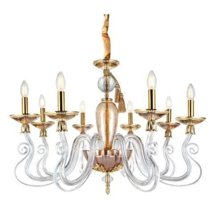 Люстра оснащена восемью лампами, что обеспечивает яркое и равномерное освещение. Она идеально подходит для гостиной, столовой или спальни, добавляя вашему дому уют и утонченную атмосферу. Тип цоколя E14 позволяет использовать как традиционные лампы накаливания, так и энергосберегающие или светодиодные варианты.
