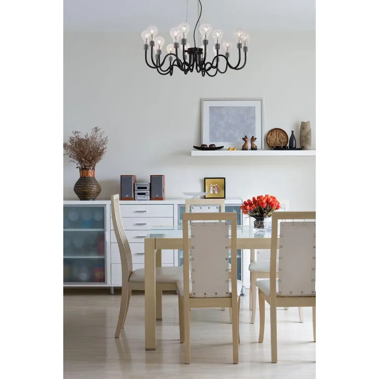 Люстра оснащена пятью лампами типа E14, что обеспечивает яркое и равномерное освещение. Суммарная мощность светильников составляет 15 Вт, что эквивалентно традиционным лампам накаливания, но при этом потребляет значительно меньше энергии, что делает эту модель энергоэффективной и экономичной в использовании.