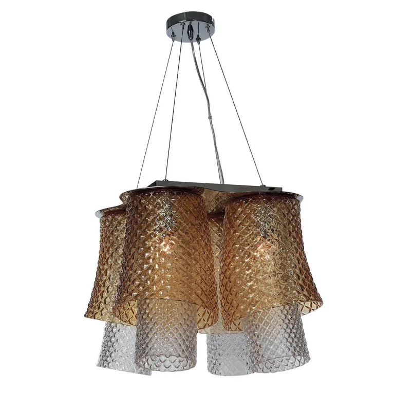 Люстра оснащена четырьмя лампами, что обеспечивает яркое и равномерное освещение пространства. Она идеально подходит для гостиной, столовой или спальни, создавая уютную и комфортную атмосферу. Основание выполнено из прочного металла, что гарантирует долговечность и надежность конструкции.