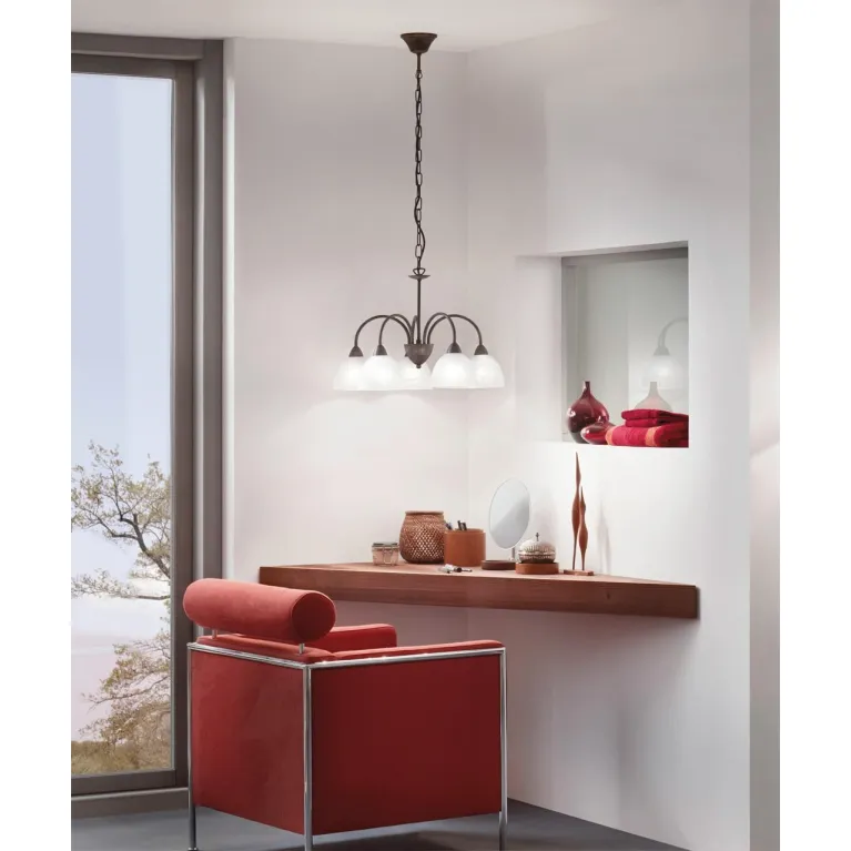 Люстра оснащена пятью лампами, что обеспечивает яркое и равномерное освещение пространства. Она идеально подходит для помещений с высокими потолками, поскольку её высота составляет 120 см. Основание выполнено из прочного металла, что гарантирует долговечность и надежность конструкции.