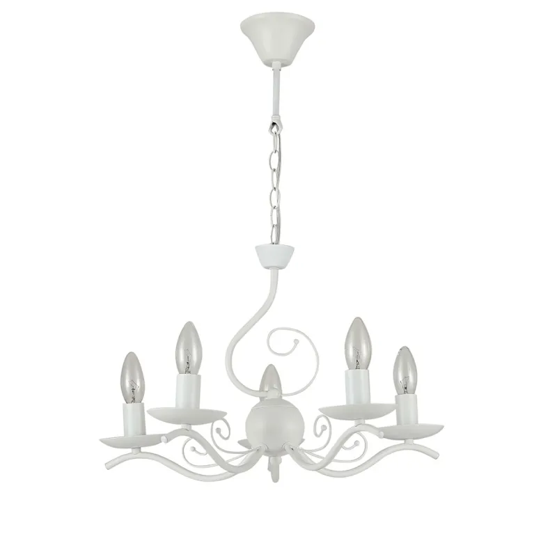 Преобладающий цвет арматуры: Белый; материал изготовления арматуры: Металл, размеры, мм: / высота 620 / диаметр 500. Общая мощность – 200 Ватт, а максимальная площадь освещения до 10 м2. Основной тип ламп, предусмотренный производителем: Накаливания с цоколем E14. В зависимости от предпочтений можно использовать лампы теплового, холодного или нейтрального света, за исключением люстр с типом цоколя LED.
