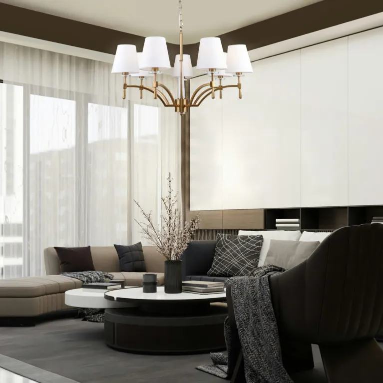 Преобладающий цвет плафонов: Белый, арматуры: Бронза; материал изготовления арматуры: Металл, размеры, мм: / высота 810 / диаметр 750. Общая мощность – 280 Ватт, а максимальная площадь освещения до 14 м2. Основной тип ламп, предусмотренный производителем: Накаливания с цоколем E14. В зависимости от предпочтений можно использовать лампы теплового, холодного или нейтрального света, за исключением люстр с типом цоколя LED.