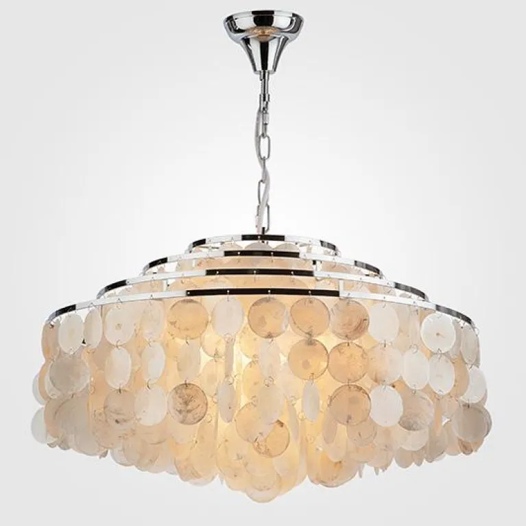 Люстра оснащена шестью лампами, что обеспечивает яркое и равномерное освещение пространства. Она идеально подходит для гостиной, столовой или спальни, добавляя уюта и элегантности вашему дому. Основание изготовлено из прочного металла, что гарантирует долговечность и надежность конструкции.