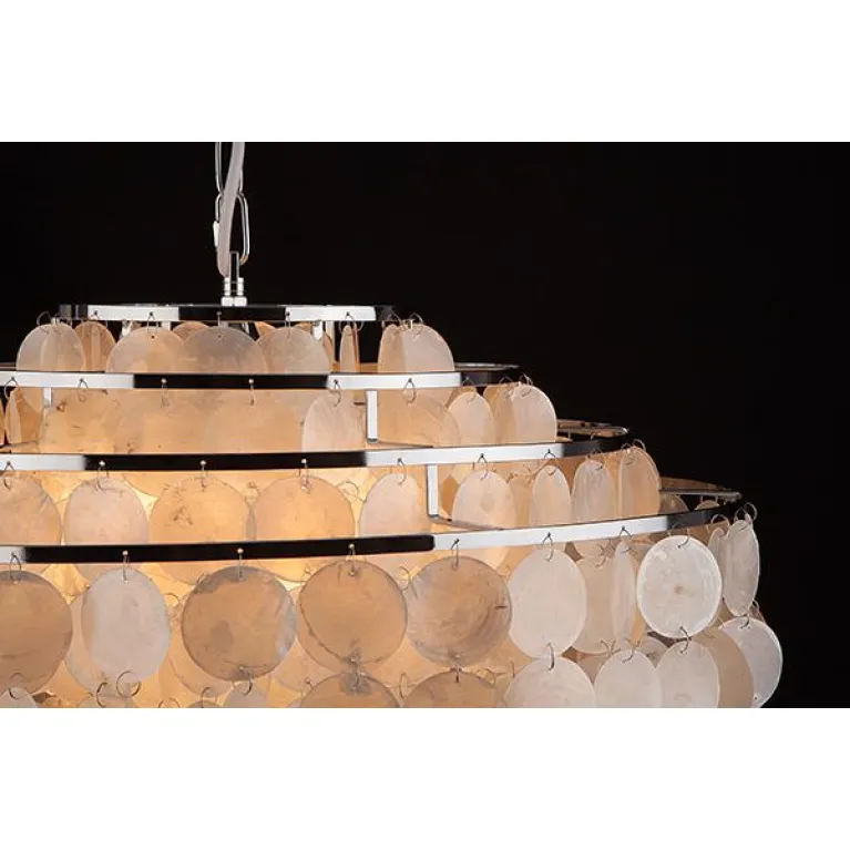 Диаметр люстры составляет 520 мм, а высота — 400 мм, что делает её оптимальным выбором для помещений со стандартными потолками. Благодаря универсальному хромированному покрытию, светильник легко впишется в любой интерьерный стиль, от современного до классического.