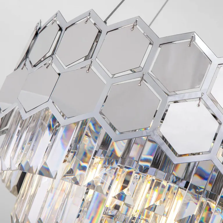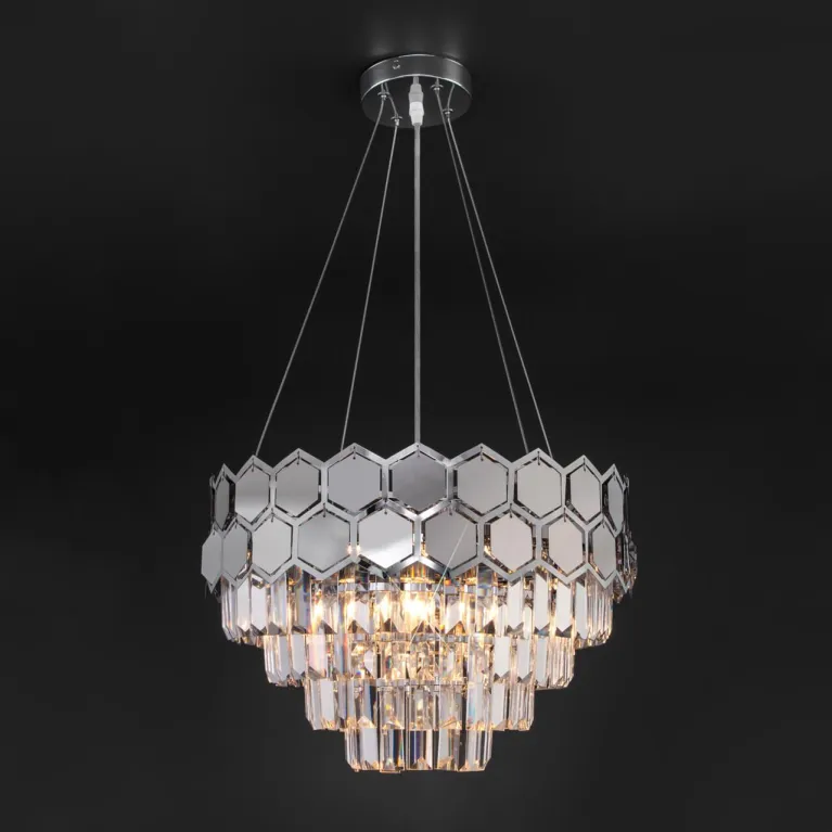 Люстра оснащена пятью лампами типа E14, что обеспечивает яркое и равномерное освещение. Основание выполнено из прочного металла с хромированным покрытием, который придает изделию современный и стильный вид. Прозрачные хрустальные подвески добавляют люстре изысканности и утонченности, создавая неповторимую атмосферу уюта и гармонии.