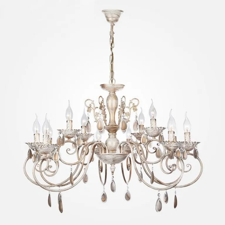 Люстра оснащена двенадцатью лампами, что обеспечивает яркое и равномерное освещение пространства. Она идеально подходит для просторных гостиной, столовой или спальни, создавая уютную и комфортную атмосферу.