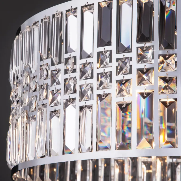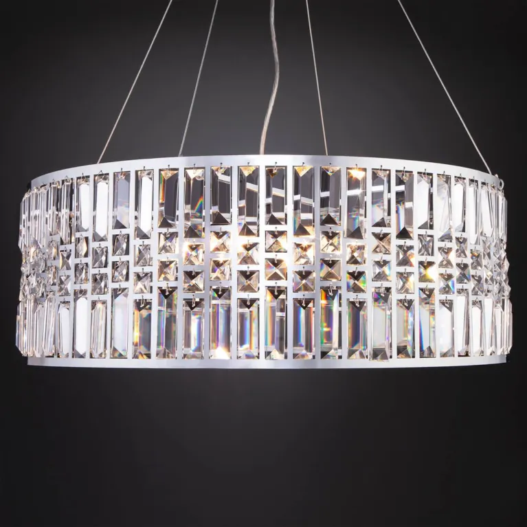 Люстра оснащена восемью лампами типа E14, что обеспечивает яркое и равномерное освещение пространства. Она изготовлена из прочного металла с хромированным покрытием, который придает ей современный и стильный вид. Прозрачные хрустальные элементы придают изделию особую утонченность и роскошь.