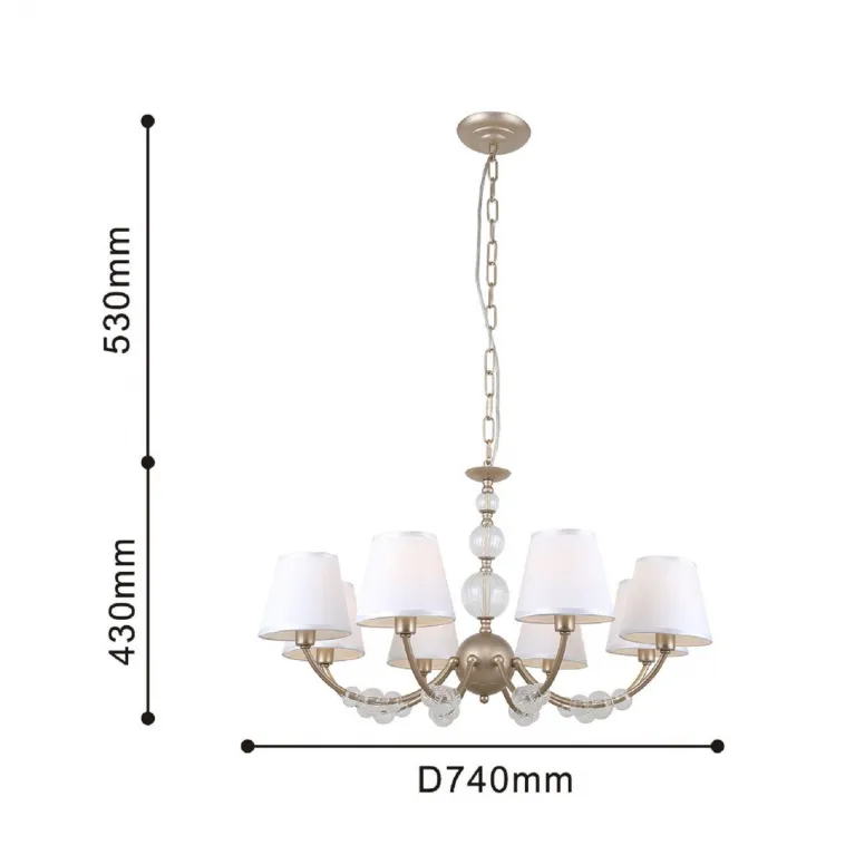 Люстра F-Promo Utremia 2662/8P совместима с лампами типа E14, что позволяет использовать как традиционные лампы накаливания, так и энергосберегающие или светодиодные варианты, обеспечивая максимальную гибкость в выборе источников света.
