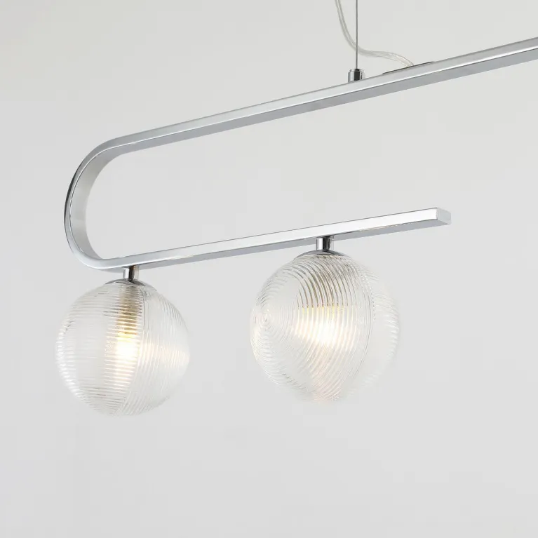 Люстра оснащена четырьмя лампами, что обеспечивает яркое и равномерное освещение пространства. Она идеально подходит для помещений с высокими потолками, так как её общая высота составляет 120 см.