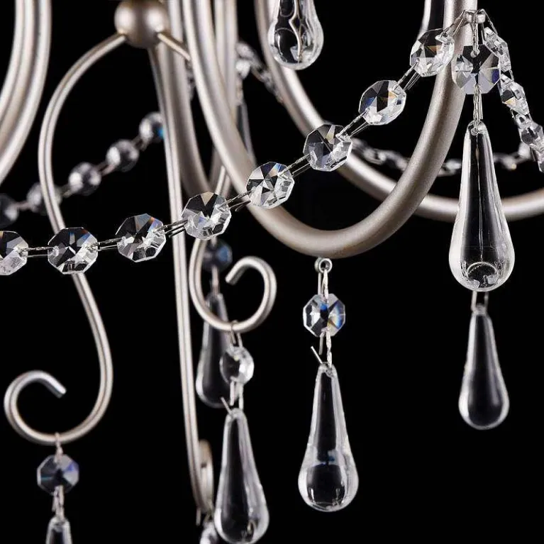 Люстра имеет современный дизайн и изящные линии, что делает её подходящим вариантом для гостиной, столовой или спальни. Она изготовлена из высококачественных материалов, включая металл и стекло, что гарантирует её долговечность и надежность.