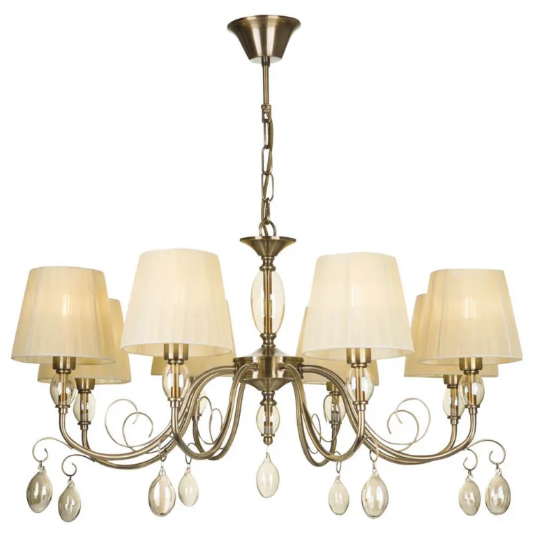 Люстра оснащена восемью лампами, что обеспечивает яркое и равномерное освещение пространства. Она идеально подходит для помещений с высокими потолками, поскольку её высота составляет 800 мм. Основание выполнено из прочного металла, что гарантирует долговечность и надежность конструкции.