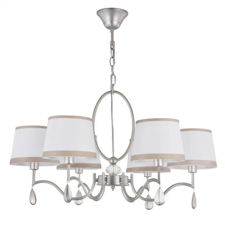 Люстра оснащена шестью источниками света с цоколем E14, что позволяет использовать как традиционные лампы накаливания, так и энергосберегающие или светодиодные. Суммарная мощность ламп - 240 Вт, что обеспечивает яркое и равномерное освещение пространства.