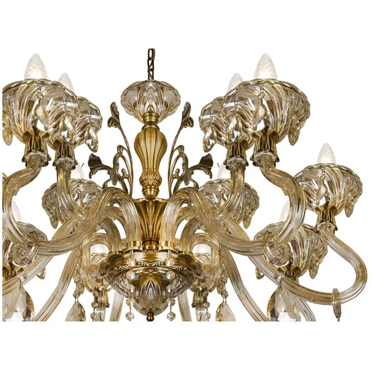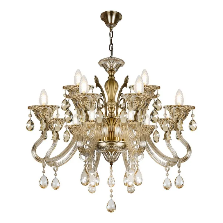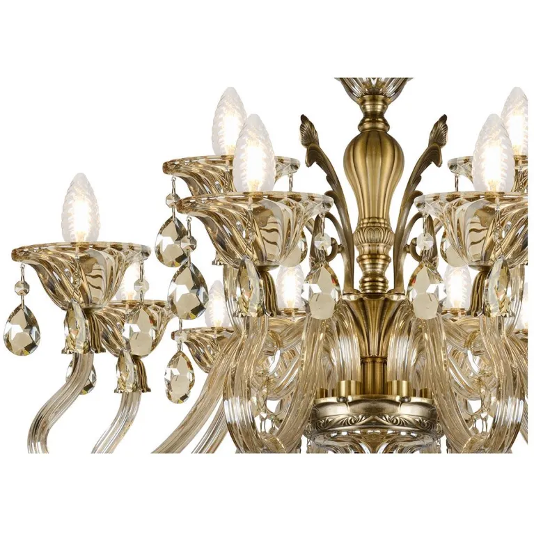 Эта люстра оснащена восемью лампами, что обеспечивает яркое и равномерное освещение пространства. Она выполнена в изысканном бронзовом цвете, который гармонично вписывается в классические интерьеры, создавая уютную атмосферу.