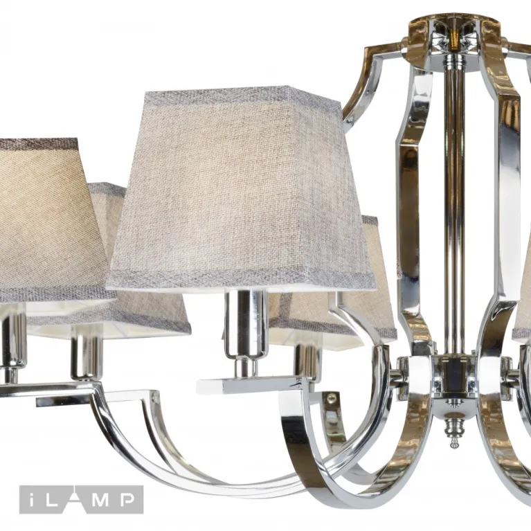 Преобладающий цвет плафонов: Серый, арматуры: Никель; материал изготовления арматуры: Металл, размеры, мм: / высота 1300 / диаметр 930. Общая мощность – 320 Ватт, а максимальная площадь освещения до 16 м2. Основной тип ламп, предусмотренный производителем: Накаливания с цоколем E14. В зависимости от предпочтений можно использовать лампы теплового, холодного или нейтрального света, за исключением люстр с типом цоколя LED.