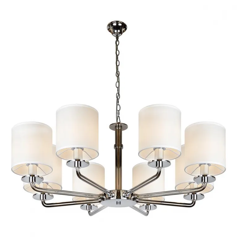 Люстра оснащена восемью лампами, которые могут быть различного типа (накаливания, светодиодные, галогенные), что обеспечивает яркое и равномерное освещение пространства. Суммарная мощность светильников составляет 320 Вт, что эквивалентно современным лампам меньшей мощности.