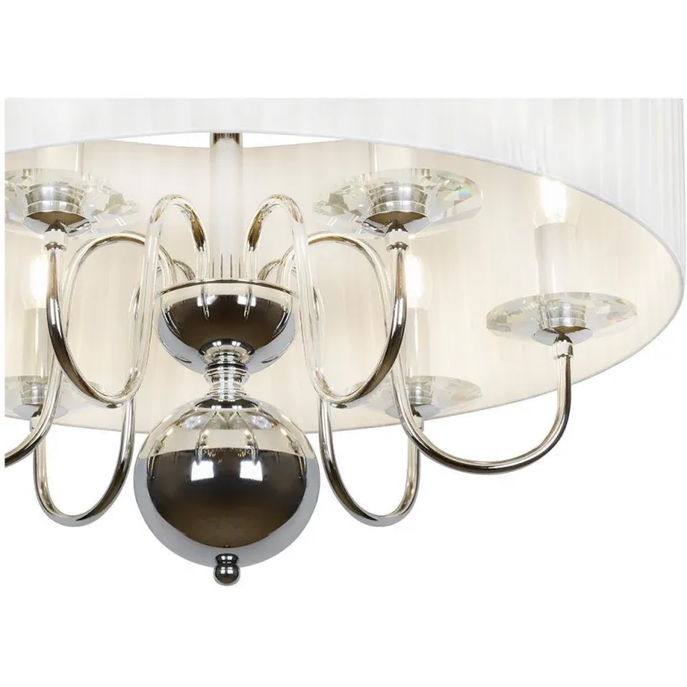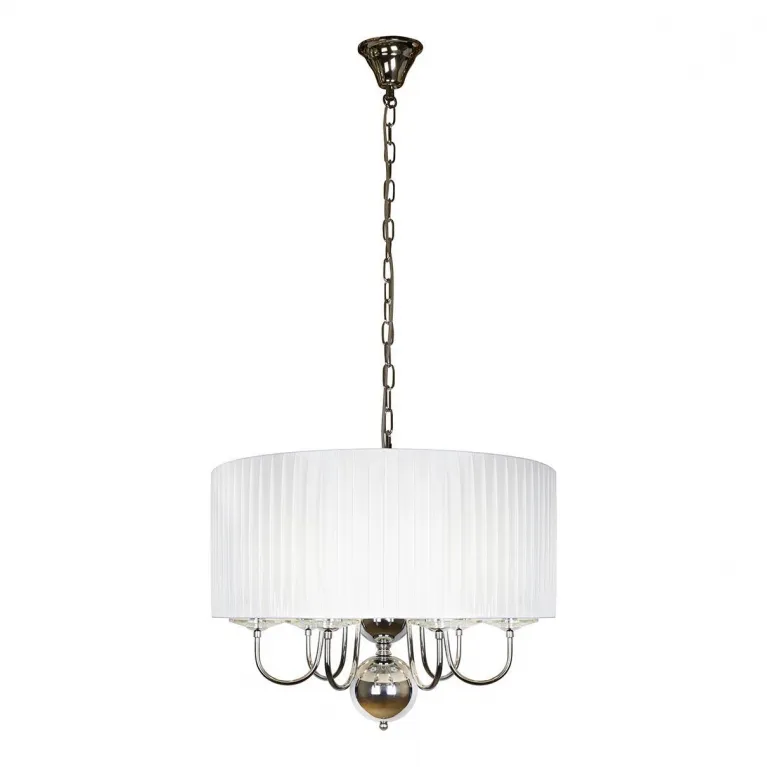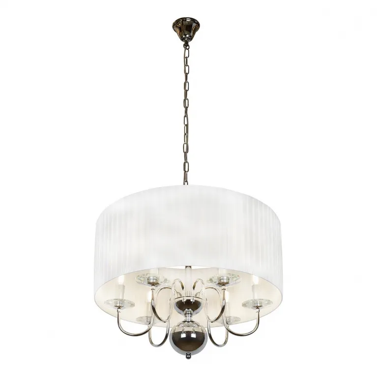 Диаметр люстры составляет 520 мм, а высота - 400 мм, делая её оптимальным выбором для помещений со стандартными потолками. Благодаря универсальному хромированному покрытию корпус гармонично впишется в любой интерьер, от классического до современного.